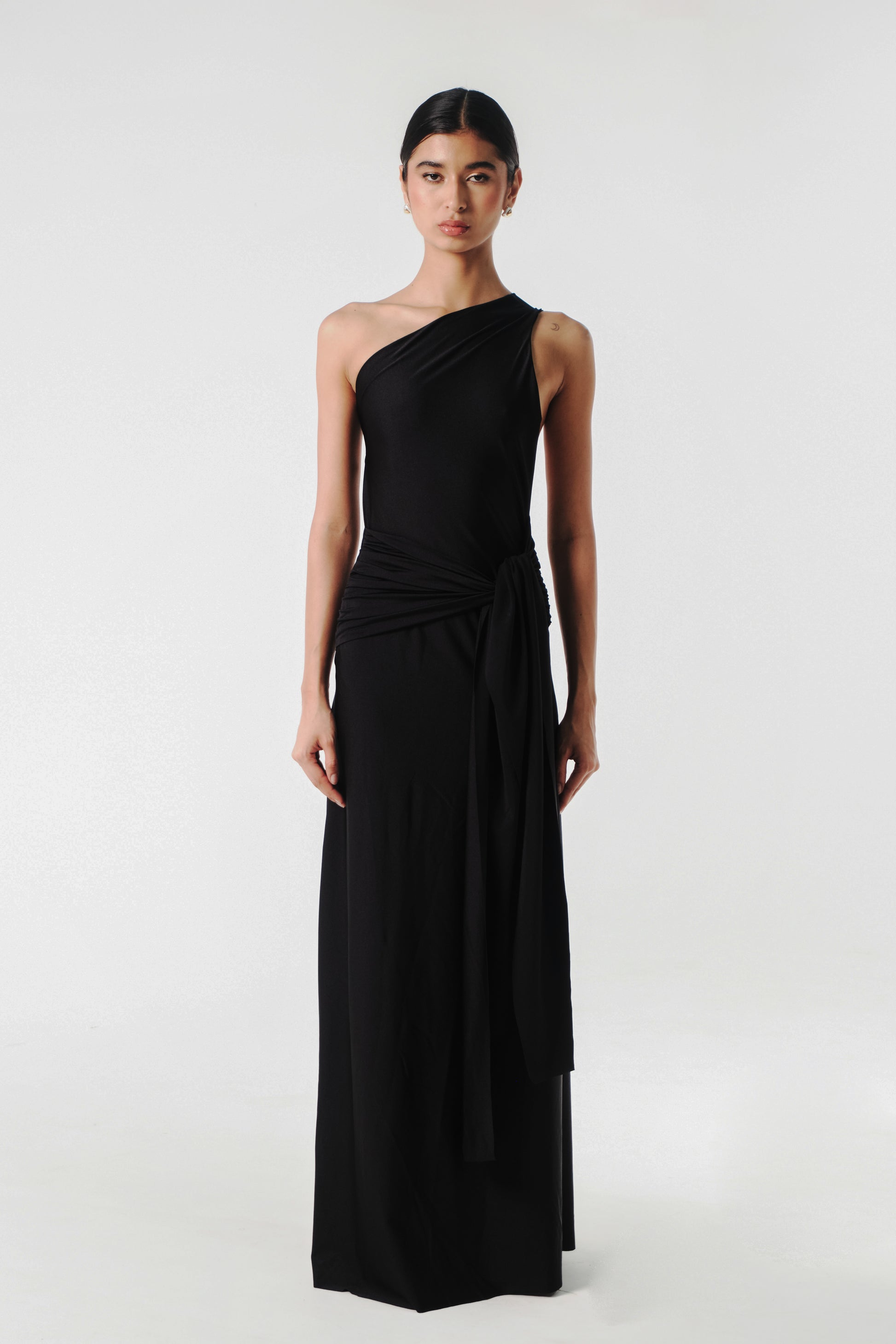 La Noche dress es un homenaje a la calma y el misterio del Caribe nocturno. Con su color profundo y elegante, evoca la serenidad de la oscuridad, donde las estrellas se encuentran con el mar.